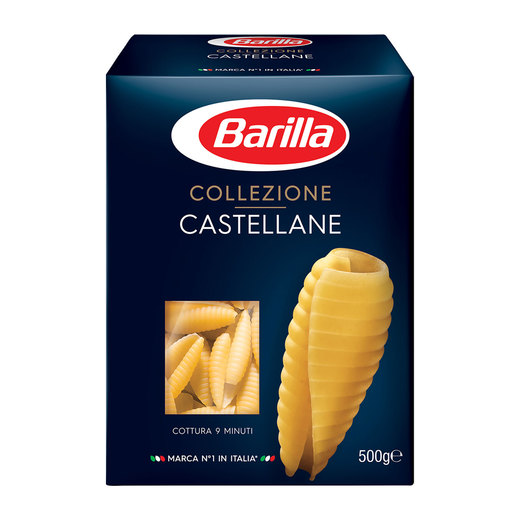 Barilla Collezione serisi, makarnayı gurme bir tabağa dönüştürür. Bronz kalıpla üretilen Barilla Collezione serisinden Castellane mükemmel sos tutuş özelliğine sahiptir. Sebzeli ve peynirli soslar için idealdir. Barilla Castellane 9 dakikada hazır olur.