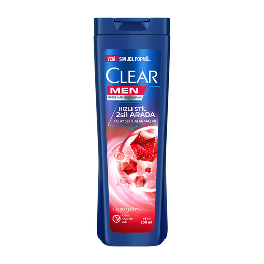 Dünyanın 1 numaralı erkek şampuanı Clear’dan Hızlı Stil 2si1arada Şampuan, erkekler için özel geliştirilen yeni sıvı jel formülü sayesinde kolay şekil alan saçlara ve canlı saç derisine kavuşabilirsiniz. İçeriğindeki taurine amino acid, B3 vitamini ve besleyici tohum yağı ile beslenmiş ve canlı saç derisine kavuşmanızı sağlar.