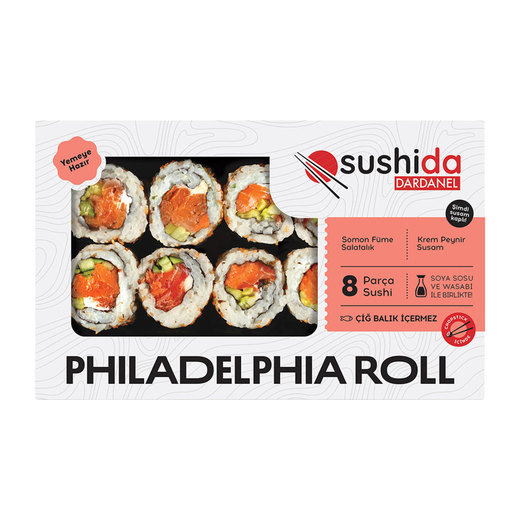 Somon füme, salatalık, krem peynir ve dereotu ile ile Japonya'ya selam göndereceğiniz bir akşam yemeği eşlikçisi olarak Philadelphia Roll'u hemen sipariş verebilirsiniz.