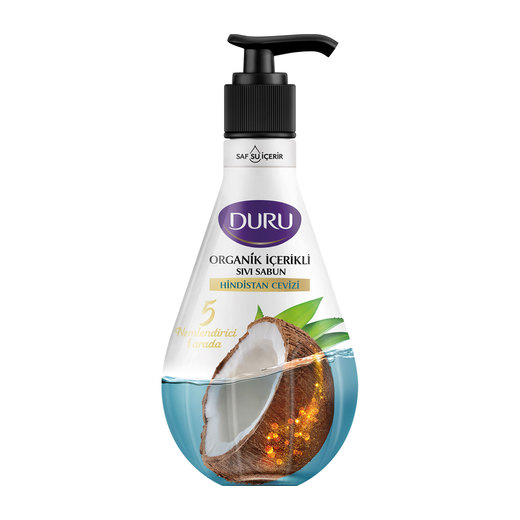 Duru Sıvı Sabun bitkisel nemlendiriciler ve saf su ile buluştu. Yeni Duru Organik İçerikli Hindistan Cevizi Sıvı Sabun, ellerinizi nazikçe temizlerken içeriğindeki 5 farklı nemlendirici ve organik Hindistan Cevizi suyu ile ellerinize yumuşak bir dokunuş bırakır, lezzetli kokusu ile her yıkama