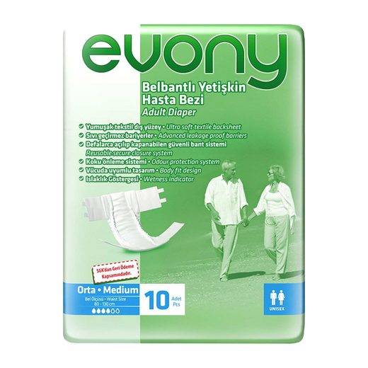 Yumuşak tekstil dış yüzey. Sıvı geçirmez bariyerler. Defalarca açılıp kapanabilen güvenli bant sistemi. Koku önlemi sistemi. Vücuda uygun tasarım.