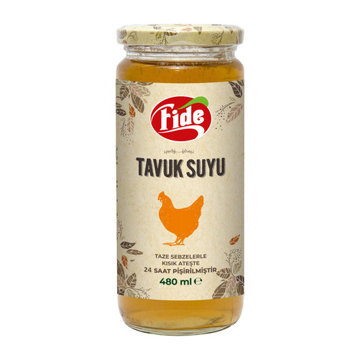 Fide Tavuk Suyu taze sebzelerle kısık ateşte pişirilmiştir. %100 doğaldır. Hiçbir katkı maddesi, koruyucu, renklendirici içermez.