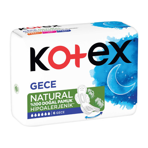Kotex Natural Hijyenik Ped Ultra Single Gece 6 Adet, kadınları regl günlerinde rahat ettirmek amacıyla üretilen kişisel bakım ürünüdür.