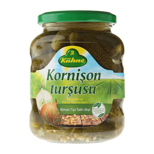 Kühne turşular dünya standartlarında üretim yapan, IFS ve BRC belgeleri olan fabrikada ve Türkiye' de üretiliyorlar. Mahsul 24 saat içinde işleme alınır. Dolum makinesi ile kavanozlara el değmeden doldurulur.Kornişon dolu kavanozlar da salamura ile doldurulur. Salamuralı kavanozların kapakları kapak kapama makinesi ile kapatılır.Satışa hazır hale gelir.