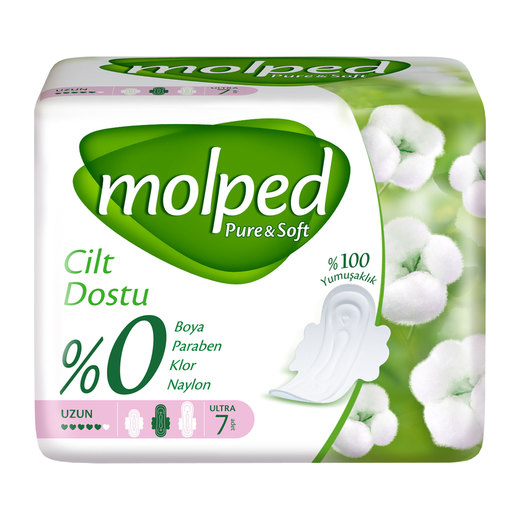 Molped Pure & Soft Hijyenik Ped, yumuşacık kanatlar ve hava ile dokunmuş üst yüzey ile %100 yumuşaklık sunar. Nefes alabilen alt ve üst yüzey ile temiz ve ferah hissetmenize yardımcı olur.