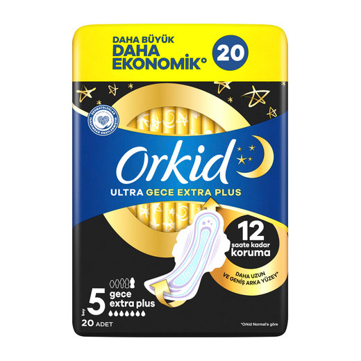Hem gündüz hem de gece kullanım için tavsiye edilen Orkid Ultra Gece Extra Plus benzersiz şekliniz için sızıntılara karşı %100'e kadar koruma sunar.