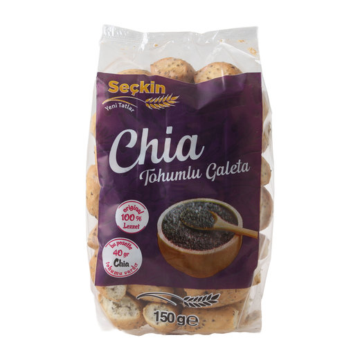 Chia kaynaklarının üretici özellikleri ve galetanın kıtır tutarlılığı bir araya gelerek hem damak zevkinize hitap eder hem de sağlıklı bir aletrantiftir.