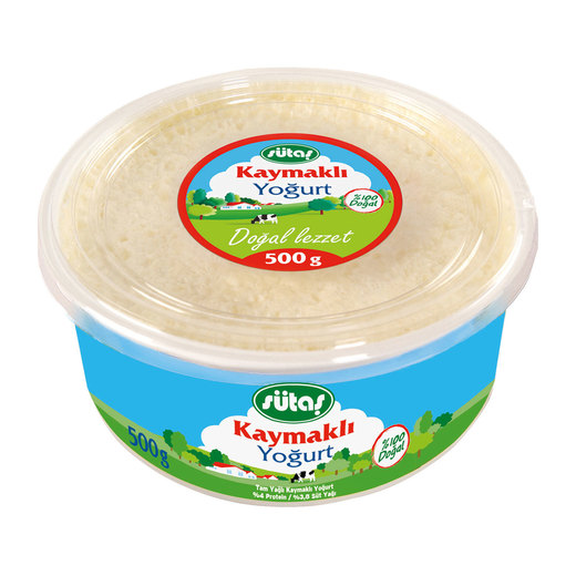Türkiye’ye has çok özel bir lezzet olan kaymaklı yoğurt,Sütaş kalitesi ve lezzetiyle kaymaklı yoğurt severlerin vazgeçilmezidir.Sütaş kaymaklı yoğurt,benzersiz lezzeti,mükemmel kıvamı,eşsiz kaymağı,tazeliği ve doğallığı ile yoğurt sever sofralara lezzet ve keyif katar.Sütaş kaymaklı yoğurt %100 doğaldır, hiçbir koruyucu madde içermez.