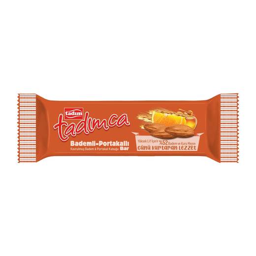 Tadım Bar Portakallı Bademli, kuru meyve ve bademli içeriği ile tatlı bir şeyler atıştırmak istediğinizde yanınızda.
